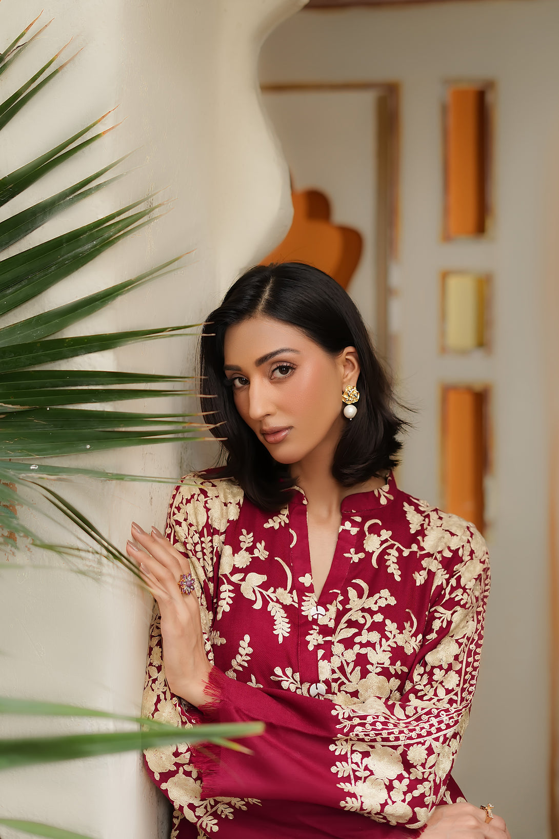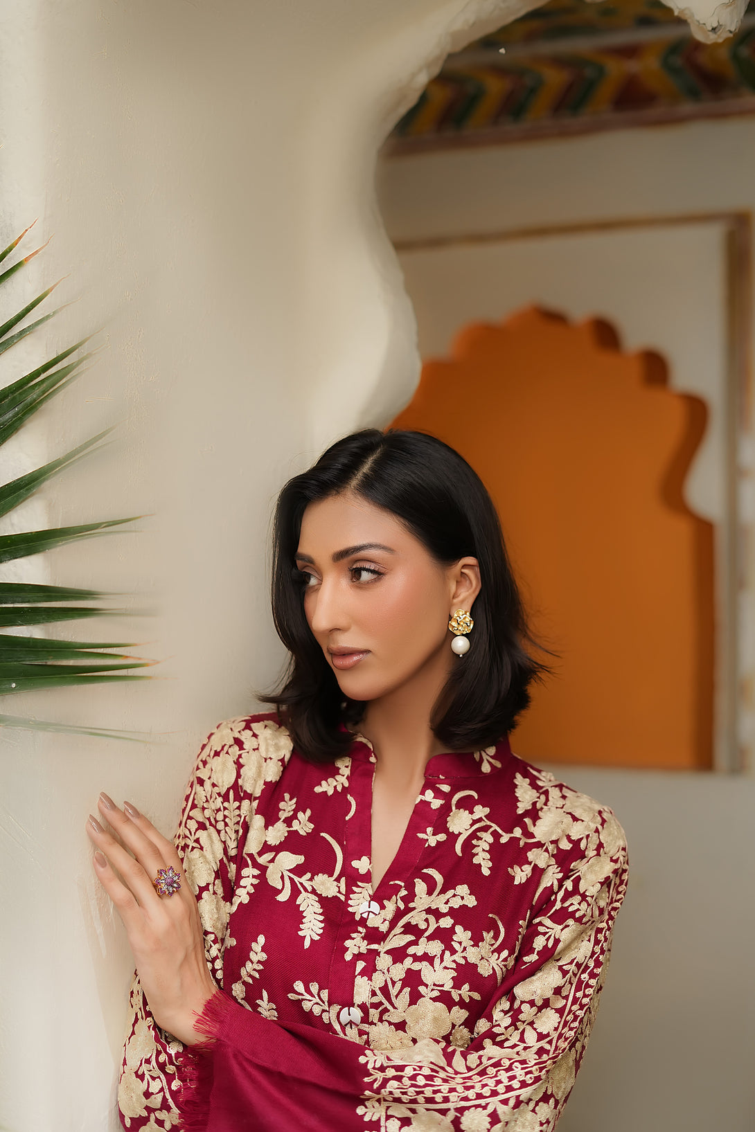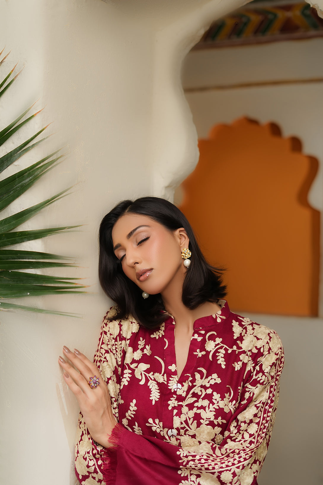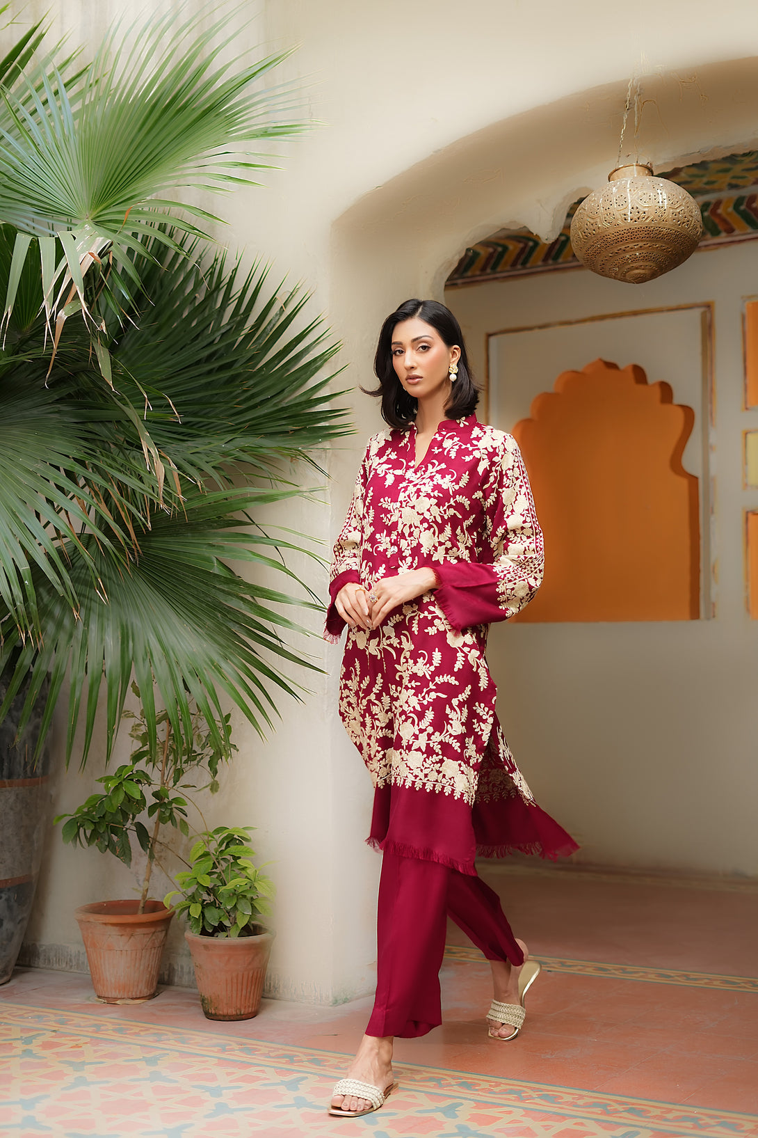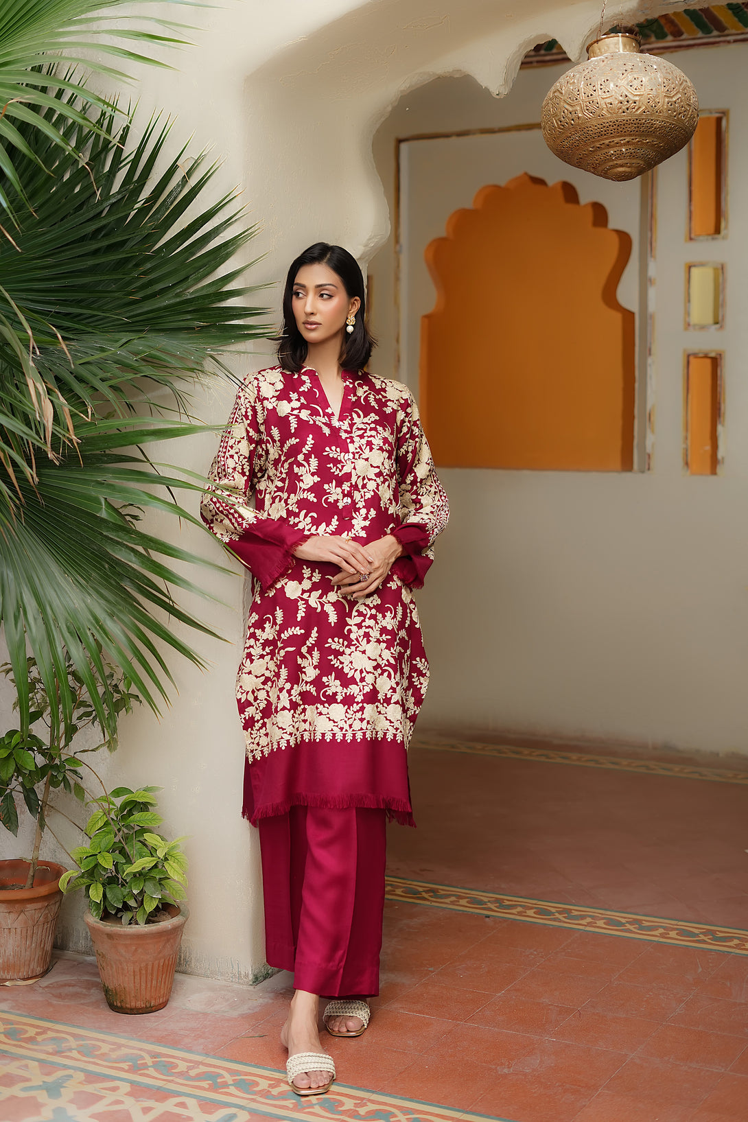 Stay warm and stylish with our exquisite Pashmina embroidered kurtas, paired perfectly with matching Pashmina pants. This versatile co-ord set is ideal for casual lunches, dinners, or even a chic addition to your workplace attire.